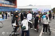 완주군의 청명한 가을 하늘 아래, 자전거로 지역의 아름다움을 만끽하는 ‘2025 완주 자전거 대행진’이 지난 주말 고산면 농업기술센터 일원에서 성황리에 열렸다. 이번 행사는 자전거세상협동조합이 주최하고 완주군이 후원했으며, 주민과 자전거 동호인 등 200여 명이 참여해 만경강을 따라 달리며 건강과 화합의 시간을 가졌다. 참가자들은 오전 9시 완주군 농업기술센터를 출발해 고산천을 따라 경천체육공원을 돌아오는 미니코스(16km)와, 자전거 동호인을 위한 풀코스(28km) 등 두 구간으로 나뉘어 주행했다. 속도를 겨루지 않는 비경쟁 라이딩 방식으로 진행돼, 가족 단위 참가자들도 여유롭게 완주의 풍경을 즐길 수 있었다. 이번 코스는 삼례읍 해전리부터 운주면 말골재까지 이어지는 편도 40km의 만경강·고산천 자전거도로 일부를 포함했다. 아름다운 강변길과 언덕코스가 조화를 이뤄 초보자부터 숙련자까지 모두가 즐길 수 있는 구간이다. 개인 자전거가 없는 주민들도 완주군 공공자전거 ‘완타’를 대여해 함께 참여하며, 자전거 이용 활성화의 의미를 더했다. 도착지에서는 전통놀이 체험