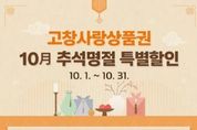 고창군이 추석을 맞아 군민 생활안정과 지역경제 활성화를 위해 ‘고창사랑상품권 특별할인 행사’를 진행한다. 이번 행사는 10월 한 달간 진행된다. 이번 특별할인은 △상품권 구매시 10% 선할인 △고창사랑카드 결제시 10% 캐시백 적립을 통해 최대 20% 혜택을 받을 수 있도록 구성됐다. 특히, 월 구매한도를 100만 원까지 확대해 군민들의 혜택을 더욱 강화했다. 예를 들어, 10만원 상품권 구매 시 10%(1만 원) 선할인을 적용받아 9만원에 구매하고, 이후 고창사랑카드로 결제하면 결제금액의 10%가 캐시백으로 적립돼 실질적으로 최대 20% 혜택을 누릴 수 있다. 다만, 선할인(10%)이 적용된 금액은 캐시백 적립 대상에서 제외된다. 심덕섭 고창군수는 “이번 추석 명절 특별 할인을 통해 군민들께는 생활비 부담을 덜어드리고, 지역 소상공인들에게는 매출 증대 효과가 기대된다”며 “특히, 군에서 지급하는 군민활력지원금과 정부의 민생소비쿠폰이 더해져 군민 모두가 더욱 넉넉한 추석 명절을 보내시길 바란다”고 밝혔다. 한편, 고창사랑상품권은 전통시장과 지역 내 가맹점에서 사용할 수 있어