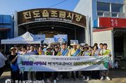 진도군은 올바른 음식문화를 확산하고 서비스 수준을 향상하기 위해 27일 조금시장 일원에서 음식문화 개선과 고객 친절 서비스 다짐 운동(캠페인)을 진행했다. 이번 행사에는 진도군과 외식업 지부, 소비자식품위생감시원이 함께 참여해 ▲친절한 손님 응대 ▲3대 청결 운동 ▲위생 수칙 준수 ▲남은 음식 재사용 금지 ▲바가지요금 근절 ▲식중독 예방 수칙 등을 집중적으로 홍보했다. 진도군 관광과 관계자는 “이번 다짐 캠페인을 통해 지역 음식점들이 청결한 위생과 친절한 서비스를 생활화해 관광객과 군민 모두가 안심하며 이용할 수 있는 외식 환경을 조성해 나가겠다”라고 밝혔다. 진도군은 앞으로도 음식문화를 개선하고 친절 문화를 확산하기 위한 활동을 지속적으로 추진해 안전하고 건강한 음식문화의 정착에 앞장설 계획이다.