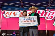 ㈜해천케미칼 변화순 대표가 최근, 진도군을 방문해 고향사랑기부금 500만 원을 진도군에 기부했다. 변화순 대표는 경기도 스마트허브 여성경영자협의회 회장으로, 협의회 회원들과 함께 ‘진도홍주 하이볼페스타’에 참석해 고향사랑기부금을 전달했다. 특히, 변화순 대표는 2023년부터 매년 500만 원씩 3년째 기부를 이어오며, 진도군과 깊은 인연을 쌓아오고 있다. 변화순 대표는 “아름다운 자연환경과 매력적인 지역문화를 가진 진도에 항상 관심을 두고 있었다”라며, “지역 주민들의 복지 향상에 작은 보탬이 되고 싶은 마음으로 매년 기부를 이어오고 있으며, 앞으로도 진도 발전을 위해 함께하고 싶다”라고 말했다. 이에 김희수 진도군수는 “3년 동안 변함없는 나눔을 실천해 주신 변화순 대표님께 깊이 감사드린다”라며, “소중한 기부금은 지역 발전과 군민의 삶을 더 나아지게 할 수 있는 공익사업에 뜻깊게 활용하겠다”라고 전했다. 한편, 진도군에 고향사랑기부금을 기부한 기부자에게는 세액공제 혜택과 지역 특산품이 답례품으로 제공된다.