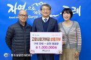 구례군은 12월 31일, 구례군과 순천시 외식업체 대표자가 고향사랑기부금을 상호 기탁하였다고 밝혔다. 이번 상호 기부는 구례군 산동면 소재 외식업체인 단테의 노현정 대표와 순천시 명궁관의 박수영 대표가 지역발전을 위한 응원을 공감하며 이루어 졌으며, 각 100만원씩을 상호 기탁하였다. 두 업체의 기부는 그동안 공공기관 위주의 상호기부가 아닌 민간분야에서 이루어져 건전한 기부문화가 확산되고 있다는 평가를 받고 있다. 김순호 구례군수는 “흔쾌히 고향사랑기부제에 참여해 주신 두 대표님께 감사드린다”며 “연말연시 지역에 온기가 가득하도록 고향사랑기부제에 많은 분의 관심과 참여를 부탁드린다”고 말했다. 한편 구례군은 연말연시 기부참여 확대를 위해 적극적인 홍보 활동을 이어가고 있으며, 제1호 기금사업인 지역응급의료기관 지원사업을 시작으로 다양한 분야에서 군민이 체감하는 고향사랑기금사업을 단계적으로 추진할 계획이다.