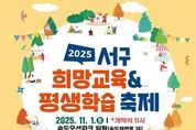 부산 서구는 오는 11월 1일 송도오션파크에서 서부교육지원청과 공동으로 '2025년 서구 희망교육 & 평생학습 축제'를 개최한다. 이번 축제는 ‘아이부터 어른까지, 함께 배우고 나누는 즐거운 하루’를 주제로 오전 11시부터 오후 4시까지 다채로운 프로그램이 펼쳐질 예정이다. 대신여자중학교의 신나는 밴드 공연을 시작으로, 관내 7개 학교, 10개 학생 동아리, 12개 평생학습 동아리가 참여해 열띤 무대를 선보인다. 또한 38개의 특색 있는 체험부스, 온가족 플리마켓, 희망교육 & 평생학습 작품 전시회 등 풍성한 볼거리와 즐길거리로 가득할 예정이다. 특히 오는 11월 22일 개관 예정인 서구아미드림도서관 홍보‧체험부스도 운영되어 구민들이 서구의 첫 구립도서관을 미리 만나볼 수 있다. 공한수 서구청장은 “희망교육과 평생학습이 어우러지는 이번 축제를 통해 지역 주민들이 함께 배우고 소통하며 성장하는 계기가 되길 바란다”고 말했다.