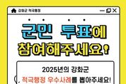 강화군은 오는 10월 27일부터 10월 31일까지 5일간 강화군 홈페이지를 통해 ‘2025년 강화군 적극행정 우수사례 군민 투표’를 실시한다고 밝혔다. 이번 투표는 행정에 대한 군민의 체감도와 참여를 높이기 위해 마련된 것으로, 강화군 각 부서에서 제출한 18건의 적극행정 우수사례 중 1차 심사를 통해 선정된 8건을 대상으로 군민이 직접 우수사례를 선택할 수 있다. 투표는 강화군청 홈페이지 ‘적극행정 우수사례 투표’ 배너를 통해 간편하게 참여할 수 있으며, 투표 결과는 군 내부 심사 점수와 합산하여 ‘적극행정 우수사례 및 우수공무원’ 선정에 반영될 예정이다. 강화군은 이번 군민 투표를 통해 현장 중심의 적극행정 성과를 널리 공유하고, 공직자의 적극적인 업무 추진 문화를 확산시켜 나간다는 방침이다. 박용철 군수는 “군민이 체감할 수 있는 적극 행정은 진정한 소통의 출발점”이라며 “앞으로도 창의적이고 능동적인 공직문화가 정착될 수 있도록 적극행정을 지속적으로 추진하겠다”고 밝혔다.