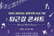 (재)인천중구문화재단(이사장 김정헌)은 오는 28일 저녁 퇴근길 시민들을 위한 특별한 문화 행사 ‘2025 영종 퇴근길 콘서트’를 개최한다. 이번 ‘영종 퇴근길 콘서트’는 구민들의 일상 속 문화예술 향유 기회를 확대하고, 다양한 장르의 문화 기획 프로그램을 통해 주민과 관광객이 함께하는 열린 문화공간을 조성하기 위한 취지로 마련됐다. 퇴근 시간대에 맞춰 진행될 이번 공연은 주민과 직장인들이 편하게 즐길 수 있는 ‘일상 속 문화예술 프로그램’으로 기획된 것이 특징이다. 먼저 오후 5시부터 5시 40분까지 인천 중구 제2청사(운남서로 100)에서 콘서트를 진행한 데 이어, 저녁 6시 30분부터 7시까지 공항철도 운서역 2번 출구 앞 광장에서 공연이 열릴 예정이다. 무료로 진행되는 이번 공연에서는 지역 예술인들이 참여하는 다채로운 음악 무대가 펼쳐진다. 이를 통해 퇴근길의 바쁜 일상에서 잠시 쉬어갈 수 있는 따뜻한 감동과 여유를 선사할 예정이다. 재단은 앞으로도 프로그램 콘텐츠 다양화와 예술인 네트워크 확대를 통해 지역 문화예술의 지속적 성장과 구민 문화 향유 증진에 힘쓸 계획이다. &nbs