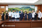 화순군은 9월 26일 군청 군수실에서 국제대회 및 전국대회에서 우수한 성적을 거둔 복싱선수·임원단을 초청해 격려했다고 밝혔다. 이날 자리에는 2025월드복싱세계선수권대회 동메달 수상자 임애지 선수, 2025 대통령배 전국 시도 복싱대회 은메달 수상자 국승준 선수, 제1회 금강주택배 전국대회 금메달 수상자 이건호 학생, 제55회 대통령배 전국 시도 복싱대회 금메달 수상자 최준원 학생, 동메달 홍재혁, 추도윤 학생과 감독, 코치진, 학부모가 함께했다. 구복규 화순군수는 “여러분의 노력과 성취가 우리 군의 큰 자랑”이라며, “앞으로도 큰 꿈을 품고 더욱 성장해 주기를 바란다”라고 말했다. 이번 격려는 선수들의 성취동기를 높이고, 지역사회와 함께 직장부 선수들과 청소년 인재를 응원하는 분위기를 조성하기 위해 마련됐다.