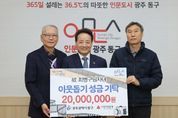 광주 동구는 광주 CEO 라이온스클럽으로부터 겨울 이불 30채(150만 원 상당)를 기탁받아 지역 아동복지시설에 전달했다고 밝혔다. 이번 기탁은 회원들의 뜻을 모아 마련됐으며, 전달식에는 김석희 회장을 비롯한 회원 10여 명이 참여해 아동들을 위한 따뜻한 응원을 전했다. 동구는 기탁받은 물품을 신속히 아동 생활 시설에 전달하고, 민·관 협력 나눔 문화를 지속적으로 확산하기 위해 다양한 사업을 추진할 계획이다. 동구 관계자는 “지역 아이들의 겨울을 위해 나눔을 실천해 주신 광주 CEO 라이온스클럽에 감사드린다”면서 “이웃을 살피는 마음이 모여 인문도시 동구를 더욱 따뜻하게 만들고, 아이들에게 큰 힘이 될 것”이라고 말했다.