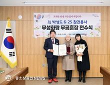 부산 동래구는 지난 9일 6․25전쟁에 참전해 무공을 세운 고(故) 박성도님의 자녀인 박순자 씨(수민동 거주)에게 무성화랑 무공훈장과 훈장증을 전수했다고 밝혔다. 고(故) 박성도님은 1948년 11월 입대 후 1201 야전 공병대 소속으로 6.25 전쟁에 참전하며 공을 세웠다. 1951년 11월 무공훈장 서훈이 결정됐지만 수여되지 못하다가, 이후 국방부와 육군본부가 무공훈장 찾아주기 활동을 적극적으로 전개하면서 유족에게 전달할 수 있게 됐다. 이날 전수식에 참석한 유족들은“늦게라도 고인의 숭고한 희생과 헌신을 잊지 않고 명예를 높여주셔서 감사드린다”라고 전했다. 장준용 동래구청장은“오늘날 우리가 평화와 번영을 누릴 수 있는 것은 나라를 위해 헌신하신 호국영웅들의 희생 덕분이다”라며 “유공자와 유가족께 깊은 감사와 존경을 표하며, 앞으로도 보훈 가족의 명예를 높이고 복지를 증진하는 데 더욱 힘쓰겠다”라고 말했다.