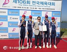 광주광역시체육회는 ‘제106회 전국체육대회’ 조정 여자18세이하부 쿼드러플스컬 경기에서 광주체고 조정팀이 3연패를 달성했다고 밝혔다. 20일 서낙동 조정경기장에서 열린 조정 18세이하부 쿼드러플스컬 경기에 참가한 광주체고 조정팀(김지선3, 노효림1, 배지영1, 천지민1)이 7분9초69를 기록하며 우승을 차지했다. 104회 전국체전부터 이 종목에서 우승을 차지한 광주체고는 3연패 대기록을 달성했다. 경량급 더블스컬 경기에 참가한 김지선, 배지영 선수는 7분23초80으로 금메달을 차지했고, 싱글스컬 경기에 참가한 노효림도 8분09초32로 가장 먼저 결승선을 통과하며 3명의 선수가 2관왕에 올랐다. 남자 18세이하부 강준우(3), 박준호(2)는 더블스컬에서 은메달을 획득했고 강한경(2), 박성빈(2)과 함께 쿼드러플스컬에서도 동메달을 차지했다. 특히 광주체고 조정팀의 상승세를 이어가고 있는 김지선(국가대표)은 지난 14일 창단식을 가진 목송그룹 여자조정팀에 입단 예정으로 우수한 체육인재가 우리 지역에서 성장하는 모범 사례로 주목받고 있다. 궁도 종목 일반부에 참가한 신용식, 윤일현, 최재훈, 고민구,