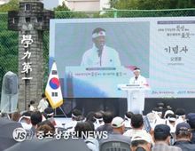 제주특별자치도는 28일 오전 10시 서귀포시 중문중학교 운동장에서 무오법정사 항일항쟁 107주기 기념식을 거행했다. ‘1918 무오년의 함성에서, 제주항일의 불꽃으로’를 주제로 열린 올해 기념식에는 독립유공자 유족과 광복회원, 청소년, 불교계, 도내 주요 기관·단체 관계자 등 500여 명이 참석했다. 특히 광복회 이주중 부회장이 직접 참석해 광복회 중앙 차원에서 함께 의미를 나누며, 세대를 아우르는 추모와 계승의 장을 마련했다. 원용길 중문청년회의소 회장의 개식선언과 국민의례로 기념식이 시작됐다. 올해 가장 달라진 점은 헌화․분향 순서였다. 지난해 행사장 한켠에 별도 추모공간을 뒀던 것과 달리, 올해는 행사 식순에 추모 순서를 포함해 발광다이오드(LED 화면과 제단을 결합했다. 무대 전면 대형 스크린에는 항일영웅 66명의 이름과 인공지능(AI) 복원 초상화가 차례로 비춰졌고, 대표자들이 헌화․분향과 목례로 선열들의 뜻을 기렸다. 중문청년회의소 특우회장과 남녀 학생 대표는 무대에 올라 결의문을 공동으로 낭독하며 미래세대가 선열들의 고귀한 정신을 이어가겠다는 상징적 메시지를 전했다. &nb