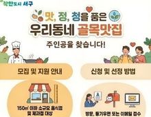 광주광역시 서구가 골목상권에 활력을 불어넣기 위해 ‘우리동네 골목맛집 100’ 발굴에 나선다. 서구는 지역 곳곳에 숨은 우수 음식점을 발굴해 대표 맛집 브랜드로 육성하고 있으며 현재 84개소가 골목맛집으로 운영 중이다. 올해는 서구 관내 소규모 음식점과 제과점을 대상으로 진행되며 서류 심사와 현장 조사, 온라인 주민 투표, 전문가 심의를 거쳐 위생·맛·서비스·향토성 등을 종합 평가해 최종 16개소 내외를 선정할 계획이다. 신청 자격은 공고일 기준 서구 내에서 영업신고 후 1년 이상 운영 중인 연면적 150㎡ 이하의 소규모 음식점과 제과점이다. 단, 프랜차이즈 가맹점·직영점, 단란·유흥주점은 제외되며 최근 1년 이내 행정처분 이력이 없어야 한다. 선정된 업소에는 ▲공식 지정패 교부 ▲전문가 경영 컨설팅 ▲SNS 홍보 콘텐츠 제작 등 맞춤형 지원을 제공된다. 특히 올해는 식품의약품안전처 위생등급제 지정을 위한 주방 위생 컨설팅을 강화하고 위생 분야 환경개선사업 신청 시 우선권을 부여하는 등 지원을 확대할 계획이다. 신청 기간은 오는 20일까지이며 참여를 희망하는 업소는 서구보건소 보건위생과를 방문하거나