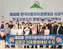영광군이 지난 14일 (사)한국공공자치연구원이 주관한 ‘제30회 한국지방자치경영대상’에서 기후환경대상을 수상했다. 30년에 걸친 깊은 역사와 명성을 자랑하는 국내 최고 권위의‘한국지방자치경영대상’은 매년 전국 지자체의 행정 역량과 정책 성과를 엄정하게 평가해 최고의 지자체를 선정한다. 이번 시상은 △행정혁신 △문화관광 △복지보건 △지역개발 △산업경제 △기후환경 등 총 6개 부문을 대상으로 진행됐다. 총 3차례에 걸쳐 진행된 이번 평가는 1차 정량평가, 2차 전문심사위원회의 정성평가 및 공적 인터뷰, 3차 만족도 조사를 거쳐 최종 수상 지자체를 결정한다. 영광군은 이번 평가에서 6개 부문 모두 우수한 평가를 받았다. 특히 군은 ‘탄소중립 실현’을 목표로 에너지 대전환을 선도해 왔으며, △주민 체감형 도시숲 조성, △지역 맞춤형 조림사업, △저탄소 축산물 인증 시범사업을 추진했다. 이 같은 친환경 에너지 생산과 효율적 관리가 지속가능한 발전에 기여한 점이 높게 평가됐다. 아울러 2030년까지 온실가스 40% 감축을 목표로 한『탄소중립·녹색성장 기본계획』과 환경부로부터 ‘우수’ 등급을 받은『기후위기 적응