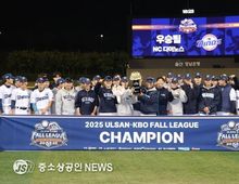 KBO가 주최하고 울산광역시와 문화체육관광부의 후원으로 개최된 ‘2025 울산-KBO Fall League’는 NC 다이노스의 우승으로 막을 내렸다. NC는 1일 울산 문수구장에서 열린 결승전에서 롯데 자이언츠를 12-1로 꺾고 대회 우승을 차지했다. 이로써 NC는 지난해 결승전에서 롯데에게 패한 아픔을 깨끗하게 설욕하며 대회 첫 우승의 영광을 안았다. NC는 2천만원의 우승 상금을 획득했고, 준우승팀 롯데는 1천만원의 상금을 받았다. ‘낙동강 더비’로 많은 관심을 모은 이날 결승전은 NC의 1회말 공격에서 사실상 승패가 결정됐다. 1회말 신재인의 적시타로 선취점을 올린 NC는 4번타자 오영수의 2루타로 2점을 더해 3-0으로 달아났다. NC는 계속된 찬스에서 김범준과 홍종표의 추가 적시타로 1회에만 6점을 득점했다. NC는 3회초 1점을 내줬지만 4회말 공격에서 밀어내기 볼넷과 사구로 다시 2점을 뽑았고, 경기 후반 김범준과 신재인의 적시타 등으로 4점을 더해 결국 12-1 대승을 거뒀다. 지난 9월 개최된 2026 KBO 신인 드래프트에서 1라운드 전체 2번으로 NC에 지명된 신재인은 결승에서만