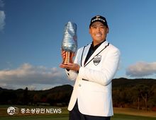 ◆ 옥태훈 인터뷰 - ‘제네시스 대상’ 수상 소감은? 일단 아직 실감은 나지 않는 것 같다. (웃음) 대회 최종라운드에 경기력이 좋지 않아 조금 시무룩하기는 하지만 ‘제네시스 대상’이라는 타이틀을 태어나서 받게 돼 영광이다. ‘제네시스 대상’을 탈 수 있음에 감사하고 더욱 더 열심히 하는 선수가 되겠다. - PGA투어 큐스쿨 최종전 직행, DP월드투어 시드 자격을 획득했다. 해외투어 계획은? 일단 12월 초에 미국으로 건너가 PGA투어 큐스쿨 최종전을 준비할 계획이다. 다음주 ‘KPGA 투어챔피언십 in JEJU’가 끝나고 난 뒤에는 웨이트 트레이닝 등 근력 강화 운동을 하면서 잘 준비하겠다. DP월드투어는 3월 정도부터 뛸 계획이다. 1~2월에는 훈련에 집중할 계획이다. - ‘제네시스 대상’에 가장 기뻐하는 사람은? 어머니가 가장 기뻐하신다. (웃음) 이번 대회 앞두고 ‘잘해야 한다’고 말씀하셔서 나름 압박감도 있었다. 16번홀에 어머니가 좋아하는 김건모 가수의 ‘빗속의 여인’을 노래로 선정했다. - 올 시즌 스스로 100점만점에 100점을 주겠다고 했다.