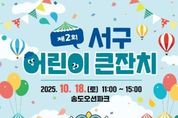 제2회 서구 어린이 큰잔치가 오는 10월 18일 오전 11시부터 오후 3시까지 송도오션파크 힐링의 광장에서 열린다. 올해에는 공연·체험·놀이행사와 부대행사, 연계행사 등이 다채롭게 펼쳐진다. 무대에서는 아이들의 눈높이에 맞춰 키즈 EDM 파티, 어린이 치어리딩, 태권도시범단 공연, 마술 & 저글링 쇼 등이, 32개 체험·홍보 부스에서는 목공예, 디퓨저 만들기, 풍선아트, 심폐소생술 교육 등이 진행된다. 놀이마당에서는 마음껏 뛰놀 수 있는 에어바운스와 공룡 미로찾기, 모형물고기 낚시놀이, 블록놀이 등을 즐길 수 있다. 또한 스탬프투어를 통해 참여 어린이들에게 홍보기념품을 선사한다. 부대행사로는 아이들이 끼와 재능을 발산할 수 있는 ‘꿈끼! 장끼! 대회’와 ‘도전! 아동권리 퀴즈왕’이 진행되는데 참가자에게는 기념품을 제공한다. 또 연계 행사인 전통놀이마당‘너나들이 놀이터(사전 접수)’와‘원북원 부산 올해의 책’ 교환 ‘송도사랑 알뜰도서 교환전(헌책 지참)’, 2025년 서구사랑 가족사진 공모전 수상작 전시회도 기대를 모은다. 공한수 서구청장은“아이들의 웃음이 넘치는