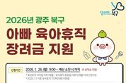 광주광역시 북구가 육아휴직 중인 남성에게 최대 90만 원의 장려금을 지급한다. 25일 북구에 따르면 오는 26일부터 ‘2026년 아빠 육아휴직 장려금’ 신청이 시작된다. 이번 사업은 양육 친화 환경을 조성하고 휴직에 따른 경제적 부담을 완화하기 위해 지난해 북구가 광주에서 처음으로 시행한 육아 지원 정책이다. 올해는 5,400만 원의 예산을 투입해 60여 명에게 장려금을 제공할 계획이다. 지원 대상은 2025년 1월 1일 이후 육아휴직자 중 휴직 시작일 이후 1개월 이상 또는 종료 후 12개월이 지나지 않은 남성이다. 또한 고용보험법에 따른 육아휴직 급여 지급 대상이면서 신청일 기준 6개월 이상 북구에 주민등록을 두고 있어야 하고 아동도 북구 주민이어야 한다. 다만, 육아휴직급여 특례 적용 대상자(6+6육아휴직)는 특례 기간이 종료된 달의 다음 달부터 신청할 수 있다. 장려금 신청은 정부24를 통한 온라인 신청만 가능하고 오는 26일부터 예산 소진 시점까지 지원자를 선착순 모집한다. 최종 선발된 지원 대상자에게는 매월 30만 원씩 최대 3개월간 장려금이 지급된다