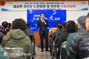 심덕섭 고창군수가 14개 읍·면을 직접 찾아가 현장에서 군민들의 목소리를 듣는 ‘2026활력고창 나눔대화’가 큰 호응을 얻고 있다. 22일 고창군에 따르면 심덕섭 군수는 13일 고창읍을 시작으로 전날 성송면까지 5개 읍·면 방문을 마쳤고, 나눔대화는 다음달 11일까지 진행된다. 심덕섭 군수는 지난해 주요 성과와 올해 군정계획을 보고한 뒤 질의응답을 통해 새로운 의견도 경청했다. 군민들도 폭설과 한파에도 준비된 좌석을 가득 메우고, 통로에까지 자리 잡으며 군정에 대한 많은 관심을 보였다. 특히 올해부턴 1개 읍·면에 하루씩 일정을 배정해 조금 더 심도깊은 논의의 장이 이어지고 있다. 고창읍에선 “마을 앞에 스포츠타운이 만들어졌지만 정작 하천을 건널 다리가 놓여 있지않아 먼길을 돌아가야 한다”며 다리 건설을 건의했고, 신림면의 한 주민은 “마을회관이 오래돼 벽면 곳곳에 균열이 생겨 불안하다”고 안전진단 필요성을 호소했다. 이외에도 문화·관광자원 개발과 인구유입정책 등 지역 발전을 위한 다양한 의견도 제시됐다. 심덕섭 군수는 현장에서 군민들의 군정 사항에 관한 고견과