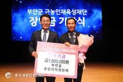 부안군 근농인재육성재단은 최근 열린 제5회 부안읍민의 날 읍민대동한마당 행사에서 (주)모터뱅크(회장 이진수)와 부안읍 주민자치위원회가 지역 인재 육성을 위해 각각 500만원과 100만원의 장학금을 기탁했다고 밝혔다. 장학금을 기부한 (주)모터뱅크는 서울 퇴계로에 이어 부안지역에 기반을 둔 이륜차 수입 및 유통 전문 기업으로, 평소 지역 일자리 창출과 지역 산업 활성화에 꾸준히 관심을 가져온 기업이다. 지속적인 사회공헌활동과 지역행사 후원을 통해 ‘기업의 이익을 지역과 나눈다’는 철학을 실천해왔다. 부안읍 주민자치위원회 역시 주민 화합과 복지 증진을 위해 주민자치프로그램 참여, 읍 환경정화활동, 독거노인 및 취약계층 돌봄 봉사 등 주민이 주체가 되는 마을공동체 실현에 앞장서 온 대표적 자치 조직이다. 이번 장학금 기탁도 ‘주민이 함께 키우는 인재’라는 공동의 뜻에서 자발적인 모금이 이뤄졌다. (주)모터뱅크 이진수 회장은 “지역에서 성장한 기업으로서 부안의 미래를 이끌 청소년들을 돕는 것은 의미있는 일”이라며 “앞으로도 지역사회 발전에 도움이 되는 사회공헌활동을 펼쳐나가겠다”는 뜻을 밝혔