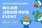 여수시는 10월 한 달간 10만 원 이상 고향사랑기부에 참여한 기부자 선착순 300명에게 ‘2026여수세계섬박람회’ 입장권을 증정하는 특별 이벤트를 진행하고 있다고 밝혔다. 이번 이벤트는 고향사랑기부제 참여자에게 감사의 뜻을 전하고 오는 2026년 개최되는 2026여수세계섬박람회를 널리 알리기 위해 마련됐다. ‘고향사랑기부제’는 자신의 주소지가 아닌 지자체에 연간 2,000만 원 이내 금액을 기부하면 세액공제(10만 원 이하 전액, 초과분 16.5%)와 함께 기부 금액의 30% 이내 답례품을 받을 수 있는 제도다. 이번 이벤트에 참여한 기부자 선착순 300명에게는 이러한 기본 혜택 외에도 섬박람회 입장권(성인권 1매)이 추가로 제공된다. 입장권은 이벤트 종료 후 순차적으로 발송될 예정이다. 참여 방법은 고향사랑e음 누리집에서 10만 원 이상 기부 후 포스터 하단 QR코드를 통해 신청서를 작성·제출하면 된다. 시 관계자는 “고향사랑기부제는 기부금 세액공제와 답례품 제공 등 다양한 혜택을 누릴 수 있는 1석 3조의 제도인데 이번 이벤트로 여수에 기부하면 ‘1석 4조’의 효과를