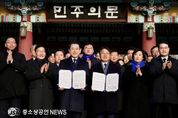 강기정 광주광역시장은 30일 ‘전남광주통합특별시 설치를 위한 특별법안’이 국회에 발의된 것과 관련해 “부강한 광주전남을 만들기 위해 지난 4주 동안 쉼 없이 달려온 지금, 참으로 기쁘고 의미있는 성과를 이뤘다”며 “시민 여러분의 관심과 지지가 있었기에 가능했다”고 소회를 밝혔다. 강기정 시장은 “지난 1월 2일 광주전남 통합 추진을 공식 선언한 이후, 공청회와 간담회, 설명회를 통해 현장의 의견을 수렴해 입법을 준비해왔다”며 “그 결과 특별법안이 더불어민주당 당론으로 채택돼 국회에 발의됐다”고 설명했다. 강 시장은 다만 “특별법 발의 과정에서 국세의 지방세 전환 등 재정 특례조항이 포함되지 못했고, 해양수산부 이전과 같은 정부 부처 이전 요구도 법안에 담기지 못한 점은 아쉬움으로 남는다”고 밝혔다. 강 시장은 국회 심의과정에서 공공기관 2차 이전을 통한 많은 기관 유치와 지방재정 자립도를 높일 수 있는 재정 특례가 반드시 반영될 수 있도록 끝까지 노력하겠다고 강조했다. 이날 발의된 특별법은 국회 행정안전위원회 법안소위와 공청회, 행안위 전체회의를 거쳐 법제사법위원회 심사를 받을 예정이며, 이르면 설