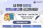 내 주변 빙판길 안전신문고로 신고하세요! '25년 12월 1일 ~ '26년 2월 28일 겨울철 재난 안전 위험 요소 집중신고 기간 운영 ■ 겨울철 집중신고 대상 (대설) 제설 미흡, 제설함 관리 불량, 시설물 파손·붕괴 위험 등 (한파) 인도 결빙, 동파 우려, 고드름 낙하, 한파 쉼터 불편 등 (화재) 비상구 물건 적치, 담배꽁초 투기, 소화시설 불량, 불법 취사·소각 등 (축제·행사) 인파 밀집 우려, 행사장 시설 파손, 안전관리 미흡 등
