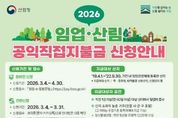 순천시는 2026년 임업‧산림 공익직접지불금 신청접수를 오는 3월 4일부터 4월 30일까지 실시한다고 밝혔다. 임업직불제는 산림의 공익적 기능을 증진하고 임업인의 소득안정을 위해 지급대상 산지에서 대추, 호두, 밤 등 임산물을 생산하거나, 나무를 심거나 가꾸는 육림업에 종사하는 임업인에게 직불금을 지급하는 제도이다. 지급 대상은 임산물생산업의 경우 2019년 4월 1일부터 2022년 9월 30일까지 임야 대상 농업경영체로 등록된 산지에서 직전 1년 이상(연간 60일 이상) 임산물 생산업에 종사하고, 연간 임산물 판매금액이 120만 원 이상 등 일정 자격을 갖춘 임업인이어야 한다. 육림업의 경우 산림경영계획 인가를 받고 동일 기간 내 임야 대상 농업경영체로 등록된 산지에서 직전 1년 이상(연간 60일 이상) 육림업에 종사하고, 직전 10년간 육림 실적이 3ha 이상 등 일정 자격을 갖춘 임업인이어야 한다. 간편신청(문자·카카오톡)은 3월 4일부터 3월 31일까지고, 온라인 신청은 3월 4일부터 3월 31일까지이며 ‘임업-in 통합포털'에서 신청할 수 있다. 또한, 방문 신청은 4월 1일부