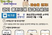 화순군은 27일 군민의 일상 속 걷기 실천을 유도하고 걷기 문화 확산을 위해 오는 3월부터 11월까지 모바일 걷기 앱 ‘워크온’을 활용한 군민 걷기 챌린지를 운영한다고 밝혔다. 이번 챌린지는 화순군민이면 누구나 참여할 수 있으며, 참여는 ▲워크온 앱 설치 ▲화순군 공식 커뮤니티 가입 ▲챌린지 화면에서 ‘참여하기’를 선택한 후 스마트폰을 소지하고 걸으면 된다. 다만, 참여 지역이 화순군으로 제한되어 있어 휴대폰 위치 설정을 반드시 활성화한 후 진행해야 한다. 화순군은 9개월간 걷기 챌린지를 운영할 계획이며, 1차 챌린지는 3월 6일부터 25일까지 20일간 진행된다. 목표는 15만 보 달성으로, 목표를 달성한 군민 90명에게는 추첨을 통해 모바일 상품권(5천 원권)을 지급할 예정이다. 박미라 보건소장은 “다양한 걷기 챌린지를 통해 군민들이 일상에서 자연스럽게 걷기 습관을 기를 수 있도록 돕겠다”라며, “걷기 실천을 통해 걷기 좋은 동네, 건강한 화순을 만드는 데 군민 여러분의 많은 참여들 부탁드린다”라고 말했다.