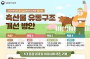 ■ 소비자 부담은 줄이고 생산자 소득은 올리는 '축산물 유통 구조 개선 방안' (목표 1) 한우 - 사료 유통비용 각각 10% 절감 및 도소매 가격 연동성 강화 (목표 2) 돼지 - 거래가격 투명성 제고 및 삼겹살 규격 강화, 기후 변화 대응 생산성 향상 지원 (목표 3) 닭고기·계란 - 가격 조사 체계 개편 및 등급제 활성화 (목표 4) 온라인 - 온라인 거래 활성화 및 가격 비교 서비스 확대 ■ 4대 중점 과제 및 10대 세부 추진 과제 01. 한우 유통 효율화 및 사육 방식 개선 - 한우 유통 효율화(농협) 및 직거래 확산 - 한우고기 판매장 유형별 소·도매가격 연동성 강화 - 한우 사육 방식 개선 및 단기 비육 한우고기 유통 02. 돼지 거래가격 투명성 강화 및 삼겹살 규격 강화 - 경매 물량 확대 및 거래가격 수집·제공 - 삼겹살 규격 강화 및 부위 세분화 - 돼지 생산 관리 인증제 도입 및 기후변화 대응 생산성 향상 지원 03. 닭고기·계란 가격 조사 개선 및 계란 등급제 활성화 - 닭고기·계란 가격 조사 체계 개편 - 계란 등급 판정 표