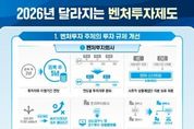 중소벤처기업부는 「벤처투자 촉진에 관한 법률」 및 하위법령(시행령, 시행규칙) 개정을 바탕으로 ’26년에 새롭게 달라지는 벤처투자 제도를 발표했다고 밝혔다. 법·제도 개편사항은 ’25년에 개정되어 시행중이거나, ’26년에 개정될'벤처 4대 강국 도약 종합대책'(’25.12)의 후속 입법 과제로, ▲벤처투자 주체의 투자 규제 개선, ▲벤처투자 세제 지원 확대, ▲벤처투자 생태계 기반 강화 등 크게 세 가지로 구분되며, 주요 내용은 다음과 같다. 1 벤처투자 환경 개선을 위한 투자 규제 완화 ① 벤처투자회사 벤처투자회사 등의 투자의무 이행 기간을 기존 3년에서 5년으로 완화하고, 이에 따라 연도별 투자 의무도 합리적으로 조정한다. 기존에는 벤처투자회사 등록 후 3년까지 매년 1건 이상 투자가 필요했으나, 등록 후 3년까지 1건, 5년까지 추가 1건 이상 투자하도록 하여 초기 부담을 경감한다. (’26.7.1 시행) 아울러, 벤처투자회사 등이 투자한 기업이 사후적으로 상호출자제한기업집단(이하 ‘상출제집단’)에 편입되는 경우 5년 내 매각 의무를 폐지하고(’25.8.5 시행중), 기업형 벤