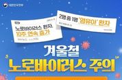 겨울철 노로바이러스 주의 ■ 일상생활 속 예방수칙 이렇게! - 흐르는 물에 30초 이상 비누로 손씻기 - 음식은 충분히 익혀 먹기 - 채소·과일 깨끗이 씻고, 껍질 벗겨 먹기 - 변기 뚜껑 닫고 물 내리기