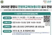 광양시는 10월부터 상반기 기본교육을 이수하지 않은 민방위 대원을 대상으로 ‘2025년 민방위 보충 2차 교육’을 실시한다고 밝혔다. 이번 보충 교육은 민방위 대원의 임무와 역할, 장비 운용, 응급처치, 재난대비, 화생방 대응 등 유사시 실전 대응 역량 강화를 위한 학습으로 구성됐으며, 민방위 대원의 복무 연차별로 구분해 진행된다. ▲ 1~2년 차 대원은 4시간 집합교육, ▲ 3~4년 차 대원은 2시간 사이버교육, ▲ 5년 차 이상 대원은 1시간 사이버교육을 각각 이수해야 한다. 사이버교육(3년차 이상)은 10월 20일부터 11월 30일까지 진행되며, PC 또는 스마트폰을 통해 ‘스마트민방위교육’ 홈페이지에서 수강할 수 있다. 교육 종료 후 최종평가에서 70점 이상을 취득하면 이수가 완료된다. 집합교육 대상자는 11월 14일부터 24일까지 실시되는 2차 보충교육에 참석하면 된다. 단, 14일 오전과 17일 전일은 휴관일로 교육이 진행되지 않는다. 민방위 교육은 주소지와 관계없이 전국 어디서나 이수할 수 있으며, 지정된 일시에 참석이 어려운 대원은 국민재난안전포털