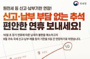 원천세 등 신고·납부기한 연장! 신고·납부 부담 없는 추석 편안한 연휴 보내세요! 10월 초 장기 연휴에 따른 납세자 불편을 해소하고자 9월 귀속 국세 신고·납부·제출 등의 기한을 5일 간 연장하기로 하였습니다. ■ 연장 대상 업무 ① 원천세 신고·납부 ②️ 증권거래세 신고·납부 ③ 인지세 납부 ④ 연금수령 개시 및 해지명세서 제출 ⑤ 취업 후 상환 학자금 대출(ICL) 원천공세 신고·납부 업무