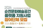(재)순천문화재단은 오는 2월 2일부터 9일까지 지역 문화예술단체의 안정적인 활동 기반을 마련하고, 문화예술 공간을 지역 문화예술 생태계의 거점으로 육성하기 위해 ‘2026 순천문화예술공간 플랫폼 지원사업’에 참여할 문화예술단체를 모집한다. ‘순천문화예술공간 플랫폼 지원사업’은 기존의 임차료 보전 중심 지원 방식에서 벗어나, 문화예술단체의 공간을 예술활동과 예술인간 교류, 시민과의 성과 공유가 유기적으로 이루어지는 공간 기반 문화예술 플랫폼으로 전환하는 데 목적을 두고 있다. 지원 대상은 순천시에서 활동 중인 문화예술단체(최소구성원 7인)로, 단체가 운영하거나 사용하는 공간을 중심으로 연습·연구·발표·교류·시민 참여 등 다양한 예술 활동을 운영하고자 하는 단체라면 신청할 수 있다. 총 20팀 내외를 선발해 단체당 150만원에서 최대 400만원까지 최장 9개월간 단체공간의 순수 임차료를 지원한다. 특히 이번 사업은 공간 운영을 단순한 사용 여부가 아닌, ▲공간을 활용한 예술 활동의 지속성 ▲예술인 간 교류 및 협업 ▲시민과의 소통과 공개 활동 등 공간을 통해 실제로 이루어지는 예술 활동의 흐름과 확산