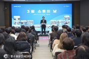 정읍시는 11일 시청 5층 대회의실에서 직원 200여 명이 참석한 가운데 3월 소통의 날 행사를 개최했다. 이날 이학수 시장은 지난 2월까지 민생회복지원금 지급과 비상근무 등 현안 업무에 매진한 직원들의 노고를 격려하며, 민선 8기의 성과와 향후 시정 방향을 공유했다. 또한 이 시장은 해빙기를 맞아 시민 생활과 직결된 주요 사업들이 본격적으로 시작되는 만큼 모든 부서가 철저히 준비해 줄 것을 당부했다. 특히 오는 6월 3일 실시되는 제9회 전국동시지방선거를 언급하며 공직자의 철저한 정치적 중립 의무와 공직선거법 준수를 강력히 주문했다. 또한 봄철 산불 예방 활동을 비롯해 정읍 동학마라톤대회와 벚꽃축제 등 지역 주요 행사의 안전하고 성공적인 개최를 위한 빈틈없는 사전 준비도 함께 강조했다. 이어 외부 전문가를 초청한 직무 특강이 진행됐다. 먼저 정읍시선거관리위원회 김윤영 지도계장이 강사로 나서 공무원의 선거 관련 금지 사항과 공직선거법 준수 지침을 상세히 안내했다. 다음으로 미래교육융합교육원 배미주 대표가 생성형 AI 도구를 활용한 보고서 작성 및 자료 정리 등