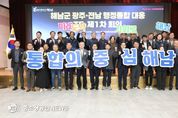 해남군은 26일 군청 상황실에서 광주·전남 행정통합에 선제적으로 대응하기 위한 ‘민·관 대응 태스크포스(TF)’ 제1차 회의를 열고 본격적인 활동에 들어갔다. 부군수를 단장으로 한 이번 TF는 해남군의회 의원과 교수 등 전문가, 언론인, 사회단체장 등 총 45명으로 구성됐으며, 행정통합 추진 과정에서 해남군의 의견을 결집하고 지역 발전을 위한 핵심 과제를 특별법에 반영하는 역할을 맡는다. 이날 회의에서는 최근 급물살을 타고 있는 광주·전남 행정통합 추진 현황을 공유하고, 해남군이 발굴한 33건의 분야별 대응 과제를 중심으로 집중 논의가 이뤄졌다. 주요 과제로는 RE100 산업단지 조성 및 분산에너지 전력망 구축과 영농형 태양광 육성, 반도체 특화단지 조성, 지역주도형 스마트농업과 푸드테크 산업 육성, 서남부권 물류기지 구축과 광역 교통망 확충 등이 포함됐다. 특히 정부가 통합 지자체에 대해 4년간 최대 20조 원 규모의 재정 지원과 300여 개의 행정 특례 부여를 예고한 가운데, 이를 해남 도약의 기회로 만들기 위한 전략적 접근 방안도 논의됐다. 회의에 참석한 민·관 위원들은“행정통합