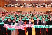 대전시의회 조원휘 의장은 12일 대전시청에서 개최된 대전충남 행정통합 설명회 및 시민 한마음 촉구대회에 참석해 지방소멸 위기 속에서 진행되는 대전·충남 행정통합 특별법안의 조속한 의결을 시민들과 함께 촉구했다. 이번 행사는 지역을 대표하는 단체·기관장, 민관협의체, 직능·사회단체 등 600여 명이 참석한 가운데 행정통합 홍보영상 상영을 시작으로 주요내빈 인사말씀, 행통통합 설명, 촉구문 낭독 및 퍼포먼스 순으로 진행됐다. 조원휘 의장은 “지방 소멸, 수도권 1극 체제라는 국가적 위기 속에서 행정통합은 대전과 충남의 생존과 미래에 대한 가장 현실적이고 강력한 해답이고, 두 지역이 힘을 모으면 인구 350만 명, 지역내총생산 200조 원의 대한민국 3대 생활권을 이뤄내는 것이다”라면서, “대전시의회는 행정통합특별위원회를 출범해 제도 개선 및 시민 공감대 형성 등 선제적 정책 마련에 총력을 기울여 왔고, 앞으로도 국회와 국가 차원의 협력을 도모해 충청권이 대한민국 100년을 이끌 새로운 성장 축이 되도록 시민들과 함께 힘을 모아 반드시 이뤄내겠다”고 말했다.