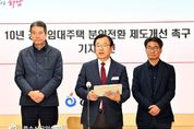 이현재 하남시장은 17일 “10년 공공임대아파트에 거주하는 무주택 서민들의 주거 안정을 위해 공공임대아파트의 분양전환가 산정기준을 5년 공공임대아파트와 동일한 수준으로 변화될 수 있도록 국토교통부에 제도 개선을 요청했다”고 밝혔다. 이현재 시장은 이날 시청 상황실에서 진행된 기자회견을 통해 “10년 공공임대아파트의 분양전환가 산정기준이 5년 공공임대아파트 보다 매우 불리하게 되어있어 무주택 서민들의 내 집 마련 꿈을 산산이 조각내고 있다”며 이같이 말했다. 문제의 핵심은 10년 임대와 5년 임대주택 간의 ‘분양전환가격 산정 방식’에 있다. 현재 10년 공공임대주택은 분양전환가격이 ‘현재 시세’인 감정평가금액을 넘지 못하도록만 되어 있다. 즉, 최근 몇 년간 폭등한 부동산 시세가 사실상 그대로 분양전환가격이 되는 구조다. 반면, 5년 공공임대주택은 ‘최초의 건설원가’와 ‘현재 시세(감정평가금액)’를 더한 뒤 2로 나눈(산술평균한) 금액으로 분양전환가격이 책정된다. 쉽게 말해, 5년 임대 입주자는 최초의 저렴했던 ‘원가’ 혜택을 절반이라도 받지만, 10년 임대 입주자는 그 혜택 없이 100% 현재 시세로 집을 사야