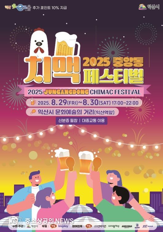 27일 익산시에 따르면 오는 29~30일 '2025 중앙동 치맥 페스티벌'이 개최되고, 30~31일은 '치킨·락 페스티벌'이 열려 도심 전체가 여름밤 축제의 장으로 변신한다.
