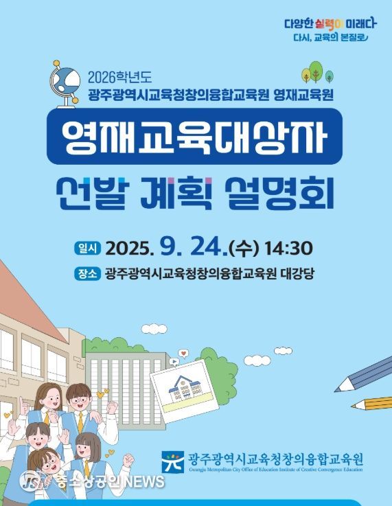 광주창의융합교육원 진영 원장은 “설명회를 통해 학교 현장의 영재교육 담당자들이 선발 전형과 운영 계획을 명확히 이해하길 기대한다”며 “광주 학생들이 잠재력과 창의성을 최대한 발휘할 수 있는 다양한 영재 프로그램을 제공하겠다”고 말했다.