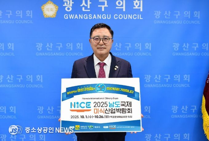 김명수 광주 광산구의회 의장이 24일 ‘2025 남도국제미식산업박람회’의 성공적인 개최를 기원하는 릴레이 응원 캠페인에 동참했다.