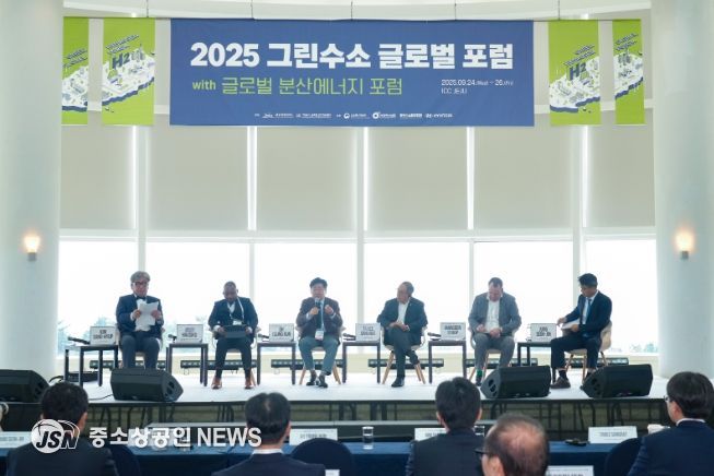 25일 제주국제컨벤션센터에서 열린 ‘2025 그린수소 글로벌 포럼’ 글로벌 라운드 테이블에서는 아시아·태평양·아프리카 등 5개국 정부·기업·국제기구 관계자들이 참석해 청정수소를 통한 탄소중립 실현 방안을 집중 논의했다.