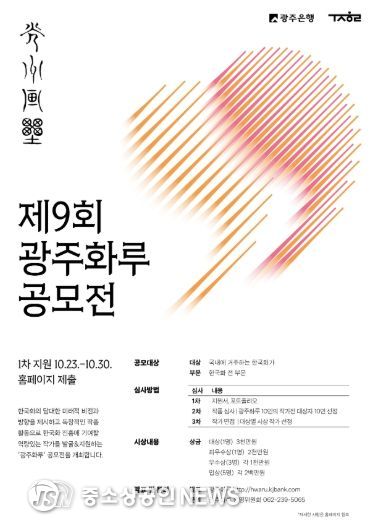 광주은행은 전국 한국화 작가를 대상으로 ‘제9회 광주화루 공모전’을 개최한다고 밝혔다.
