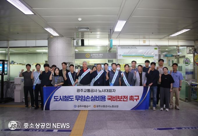광주교통공사 노사는 1일 서구 상무역에서 시민들을 대상으로 ‘도시철도 무임 손실 국비 보전 홍보 캠페인’을 펼치고, 무임 승차 적자 문제에 대한 정부 차원의 지원을 촉구하고 나섰다.