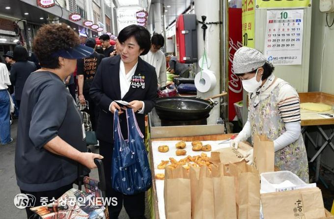 신 의장은 “이번 장보기 행사가 경기 침체와 소비 위축으로 어려움을 겪고 있는 시장 상인들에게 조금이나마 힘이 됐으면 한다”며 “시민 여러분도 전통시장에서 민생쿠폰과 지역화폐 등을 활용해 품질 좋은 우리 농·수산물과 생활용품을 합리적인 가격에 구입하고, 동시에 지역경제에도 활력을 불어넣는 데 함께해 주시길 부탁드린다”고 말했다.
