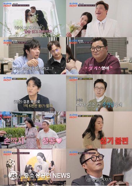 이를 VCR로 지켜본 사랑꾼 MC들도 눈시울이 붉어진 가운데, 김병만은 반지 상자를 열고 프러포즈의 대미를 장식했다.