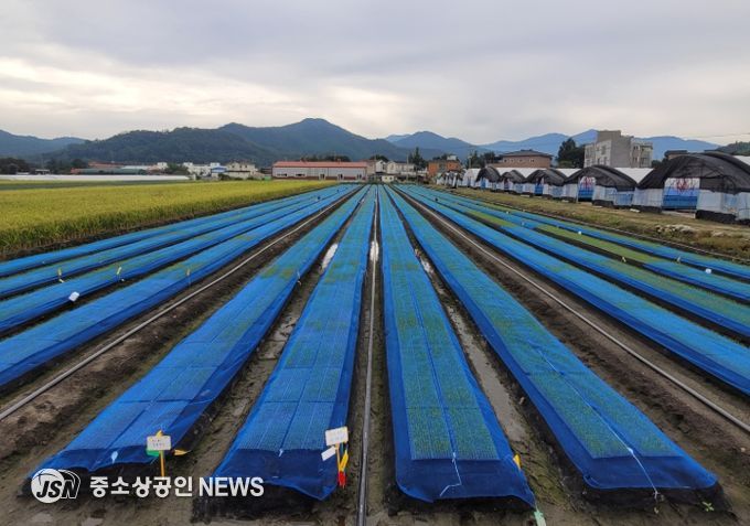 이곳 노지 육묘에 든 비용은 토양 소독, 관수 장치, 피복 자재, 정지기, 진압기 등 330만 원 정도로, 비슷한 규모의 양파 육묘 온실 신축 비용의 10% 수준이다.