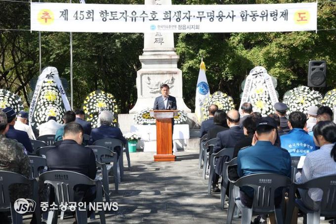 자유민주주의를 수호하다 희생된 영령들의 넋을 기리는 제45회 합동위령제가 24일 정읍 내장산 향토자유수호기념비 앞에서 엄수됐다.