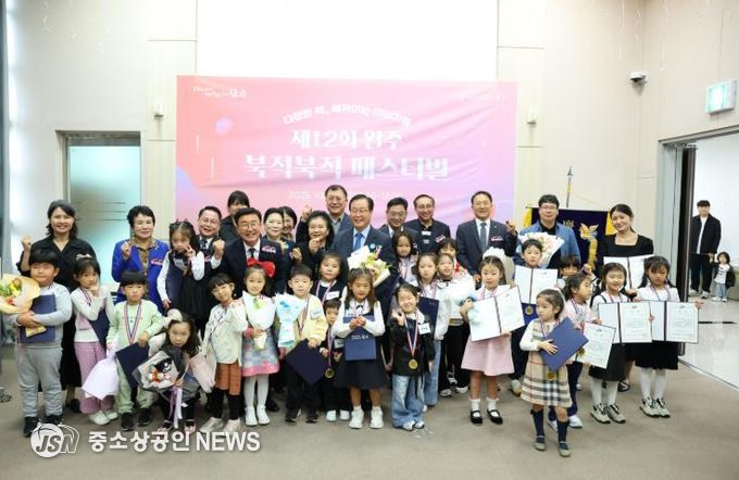완주군이 최근 열린 ‘제12회 북적북적 페스티벌’ 개막식에서 ‘취학 전 천 권 읽기’ 시상식을 열고, 올해 천 권 읽기를 달성한 어린이 28명을 축하했다.