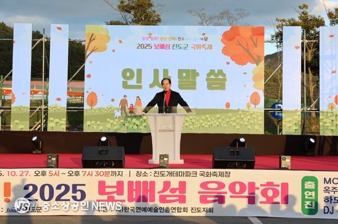 진도군은 10월 27일 오후 5시에 진도개테마파크에서 ‘2025 보배섬 국화축제’ 개막식을 성황리에 개최했다고 밝혔다.