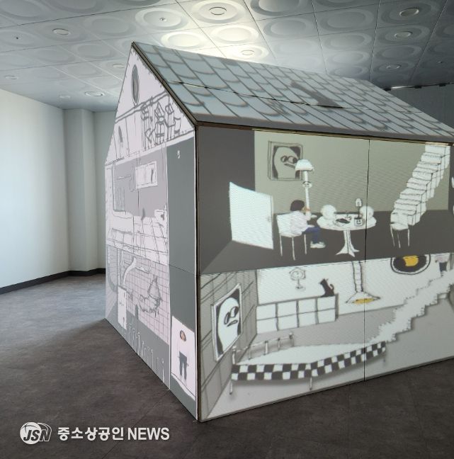 특히 집 모양의 설치작품에는 일상의 풍경과 인간의 감정이 디지털 영상으로 투사되어, 예술과 삶이 하나로 이어지는 듯한 독특한 감동을 전한다.