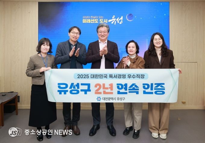 대전 유성구가 ‘2025 대한민국 독서경영 우수 직장’ 인증을 받아 대전 자치구 중 최초로 2년 연속 인증을 획득했다고 6일 밝혔다.